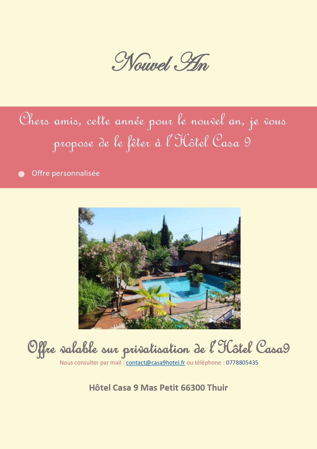 Pour cela, vous rendre dans la rubrique « contact » de notre site ou contactez nous sur contact@casa9hotel.fr ou au +33(0)7 78 80 54 35